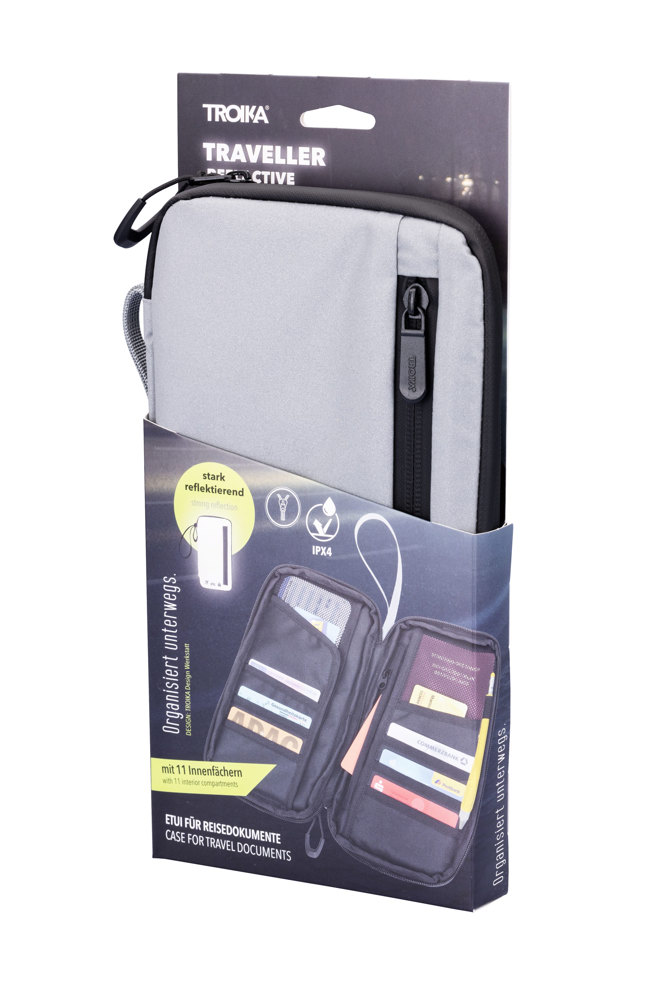 Etui für Reisedokumente, mit wasserfesten Reißverschlüssen und Handschlaufe, stark reflektierend,... mehr