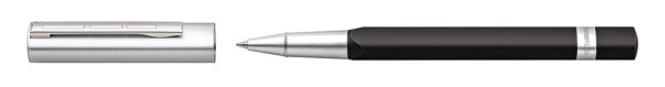 Tintenroller im schlanken dreieckigen Design, Schaft aus eloxiertem Aluminium, Kappe zum Umstecken, mit austauschbarer STAEDTLER Tintenrollermine schwarz M, Einzelverpackung, Made in Germany