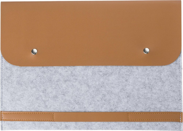 Laptop-Tasche aus rPET-Filz (14 Zoll) mit PU-Details. Schließt mit zwei Knöpfen.