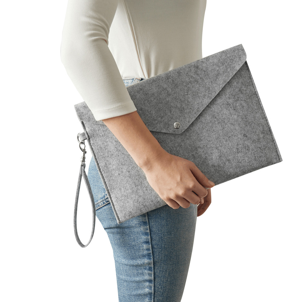 Filz-Dokumententasche WORKSHOP: 1 Hauptfach mit Druckknopfverschluss, Trageschlaufe mit Karabiner (der Karabiner ist NICHT für andere Zwecke geeignet)