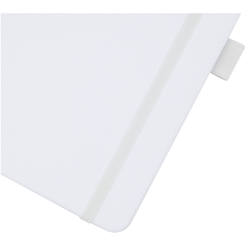A5 Notizbuch mit einem Cover aus RPET. Mit 80 Blatt, 70 g/m² recyceltem Papier, liniert, und mit Stiftschlaufe und Leseband.