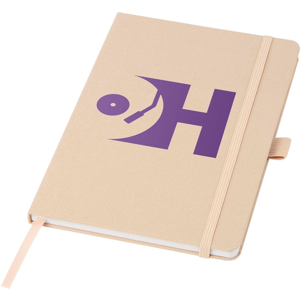 A5 Notizbuch mit einem Cover aus RPET. Mit 80 Blatt, 70 g/m² recyceltem Papier, liniert, und mit Stiftschlaufe und Leseband.