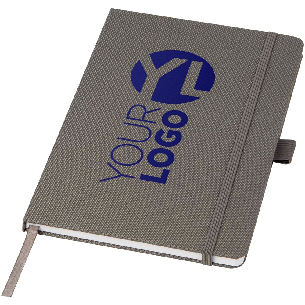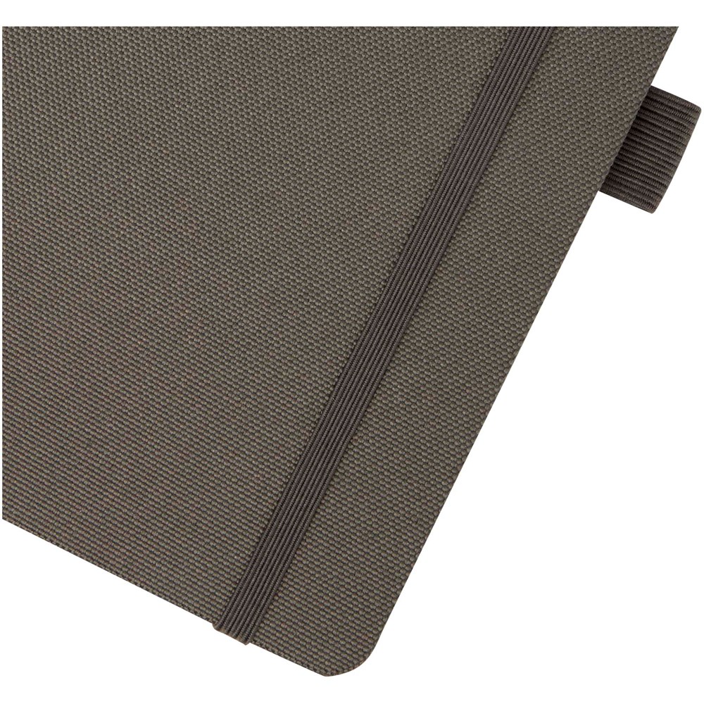A5 Notizbuch mit einem Cover aus RPET. Mit 80 Blatt, 70 g/m² recyceltem Papier, liniert, und mit Stiftschlaufe und Leseband.
