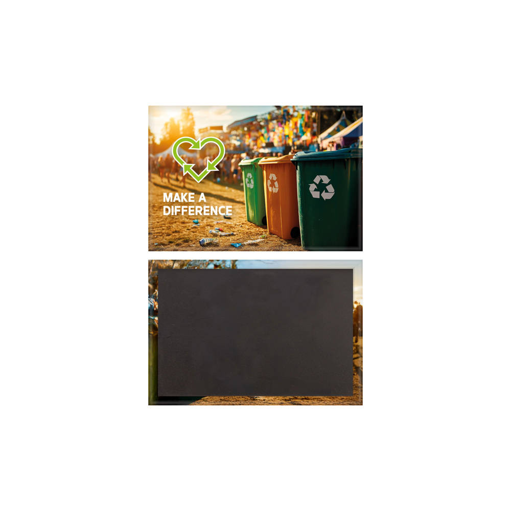 Dieser rechteckige Button mit einer Größe von 78 x 53 mm ist der einzige Button in rechteckiger Form. Dieses Modell verfügt über eine magnetische Rückseite, die eine einfache Befestigung an allen Metalloberflächen ermöglicht. Das Großformat und der Vollfarbdruck auf FSC-Papier sind die Garantie für ein perfektes Werbemittel zur Übermittlung von Botschaften!