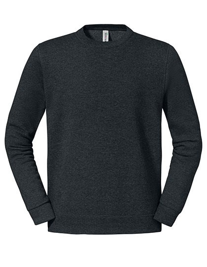 Gekämmte, ringgesponnene Baumwolle / Recycelter Polyester | Baumwollreiches 3-Enden-Fleece für hervorragende Weichheit | Hergestellt aus 100 % recyceltem Polyester und nachhaltig angebauter Baumwolle aus den USA | Feuchtigkeitsableitung für ganztägigen Komfort | Hohe Maschendichte für eine glatte Druckfläche | 2x2-Rippbündchen an Kragen, Ärmelabschluss und Bund | Zweinadel-Deckstich an Hals, Armausschnitt und Bund | Schulter-zu-Schulter-Tape