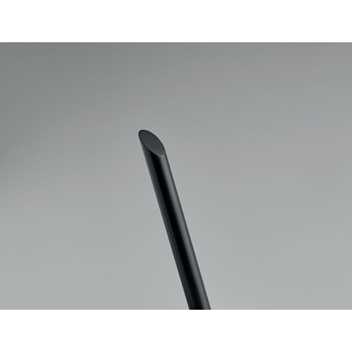 Langlebiger Stift aus recyceltem Aluminium ohne Tinte. Der Stift schreibt mittels Grafitspitze, die durch eine Kunststoffkappe geschützt ist.