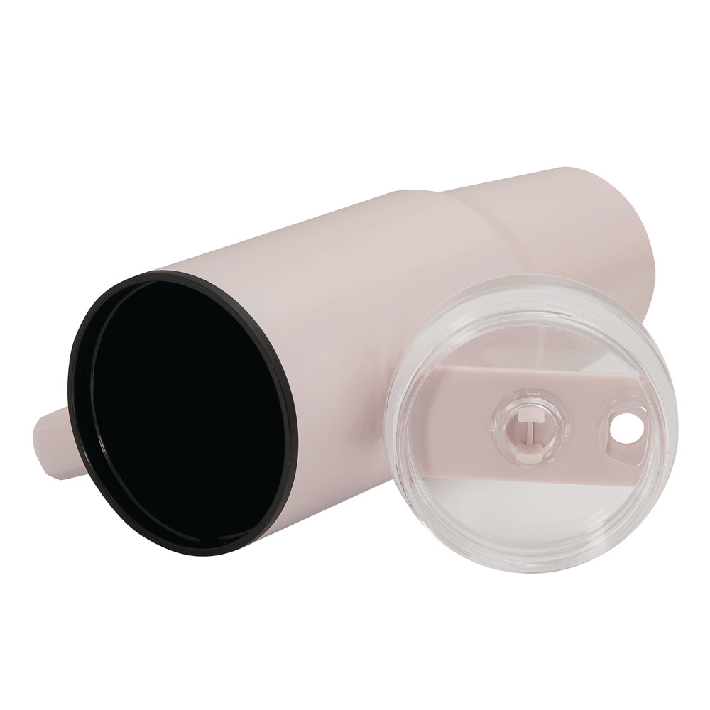 Trinkbecher DRINK ULTY, doppelwandig: innen aus Kunststoff und außen aus Edelstahl, mit praktischem Griff, transparenter Kunststoff-Deckel mit sicherem Schraubverschluss, Silikon-Dichtring, Trinköffnung mit Drehverschluss und transparentem Strohhalm, beschichteter Boden für gute Oberflächenhaftung, Füllmenge ca. 900 ml, hält ca. 2 Stunden warm und bis zu 4 Stunden kalt, in Box