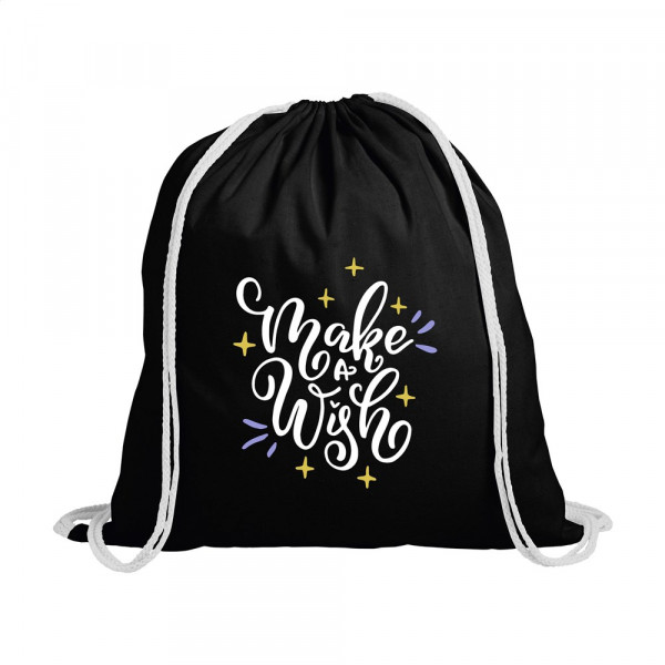 Rucksack aus 100% Baumwolle (120 g/m²). Mit Zugkordel. Fassungsvermögen ca. 8 Liter