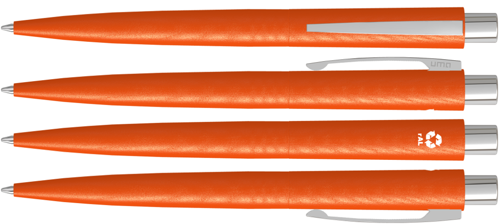 Metall-Druckkugelschreiber mit matt lackiertem Gehäuse aus recyceltem Aluminium. Metallclip und Drücker glanzverchromt.