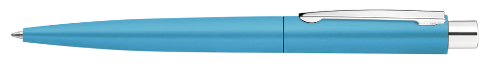 Metall-Druckkugelschreiber mit matt lackiertem Gehäuse aus recyceltem Aluminium. Metallclip und Drücker glanzverchromt.