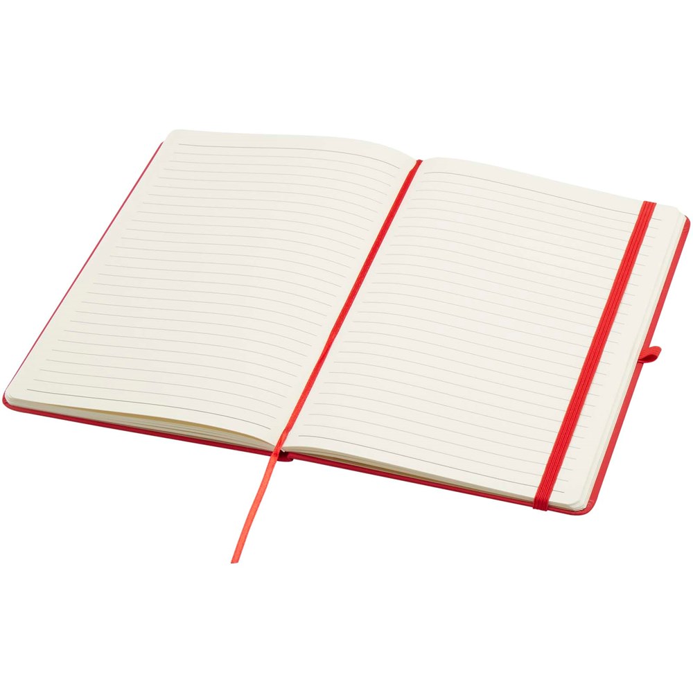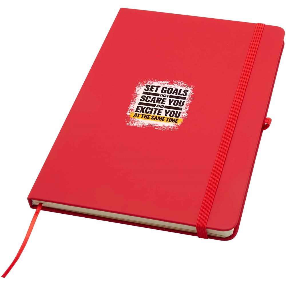 Das Spectrum Plus A5 Hardcover Notizbuch mit abgerundeten Ecken ist nicht nur ein unentbehrlicher Begleiter im Büro, sondern auch ein hervorragender Weg, um für Ihre Marke zu werben. Das Notizbuch aus Karton mit weichem Einband und 80 linierten, cremefarbenen Seiten (70 g/m²) eignet sich ideal für schnelle Ideen oder längere Notizen. Das Notizbuch ist mit Stiftschlaufe, elastischem Verschluss, Lesebändchen und erweiterbarrter Tasche ausgestattet.