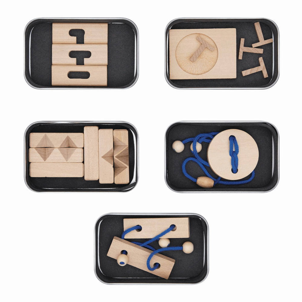 Geschicklichkeitsspiel THINK ABOUT: in Metalldose mit Papierbanderole, 5-fach sortiert mehr