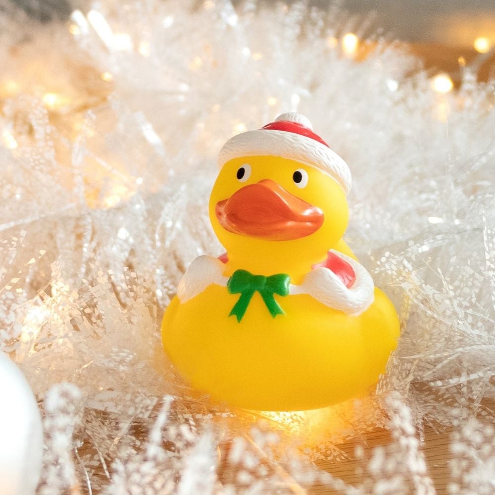 Besinnliche Feiertage sind mit dieser Ente garantiert. In ihrem roten Weihnachtsoutfit mit gelben Sternen sorgt sie für festliche Stimmung und sie hat alles für die richtige Festtagsdeko dabei: Tannenzweige, eine Kugel für den Baum, eine große Zuckerstange und die großen Socken, mit viel Platz für Geschenke. Die Weihnachtsmütze auf ihrem Kopf darf natürlich auch nicht fehlen - so kann Weihnachten kommen!