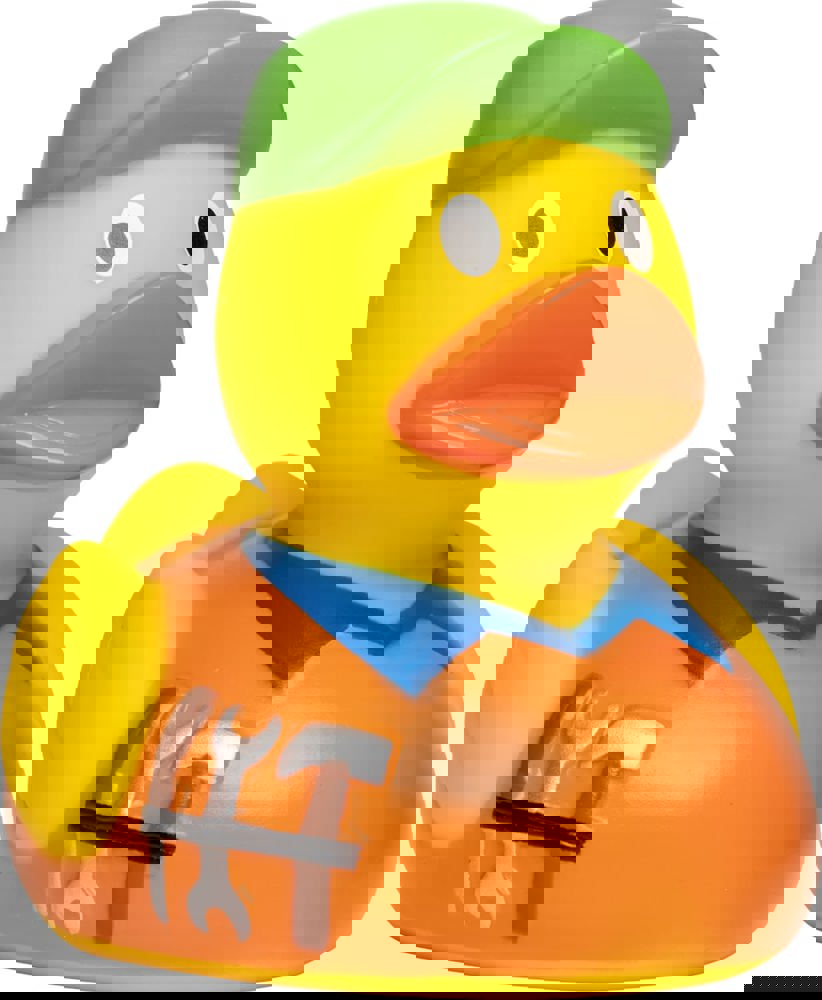 Wenn Sie irgendwelche Reparaturarbeiten rund um Ihre Badewanne haben, ist diese fleißige Ente genau die Richtige für den Job! Ihr Arbeitsoutfit umfasst eine grüne Kappe, einen orangen Arbeitsanzug mit blauem Kragen und natürlich hat sie auch Hammer, Schraubenschlüssel und Schraubendreher immer dabei.