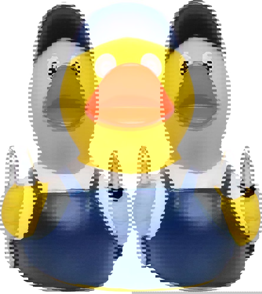 Dieses Badeentchen ist ein echter Handyman. Egal was - er repariert alles. Bestens ausgestattet mit Schraubenschlüssel und Schraubendreher ist er fröhlich im Blaumann zur Stelle.