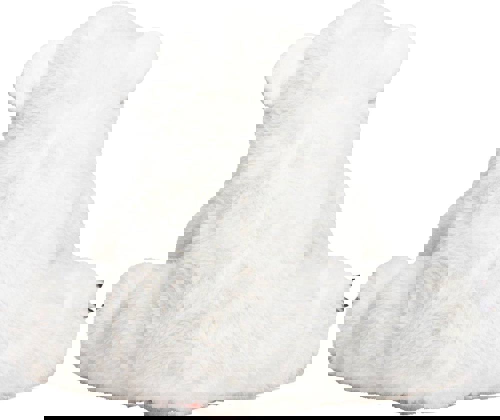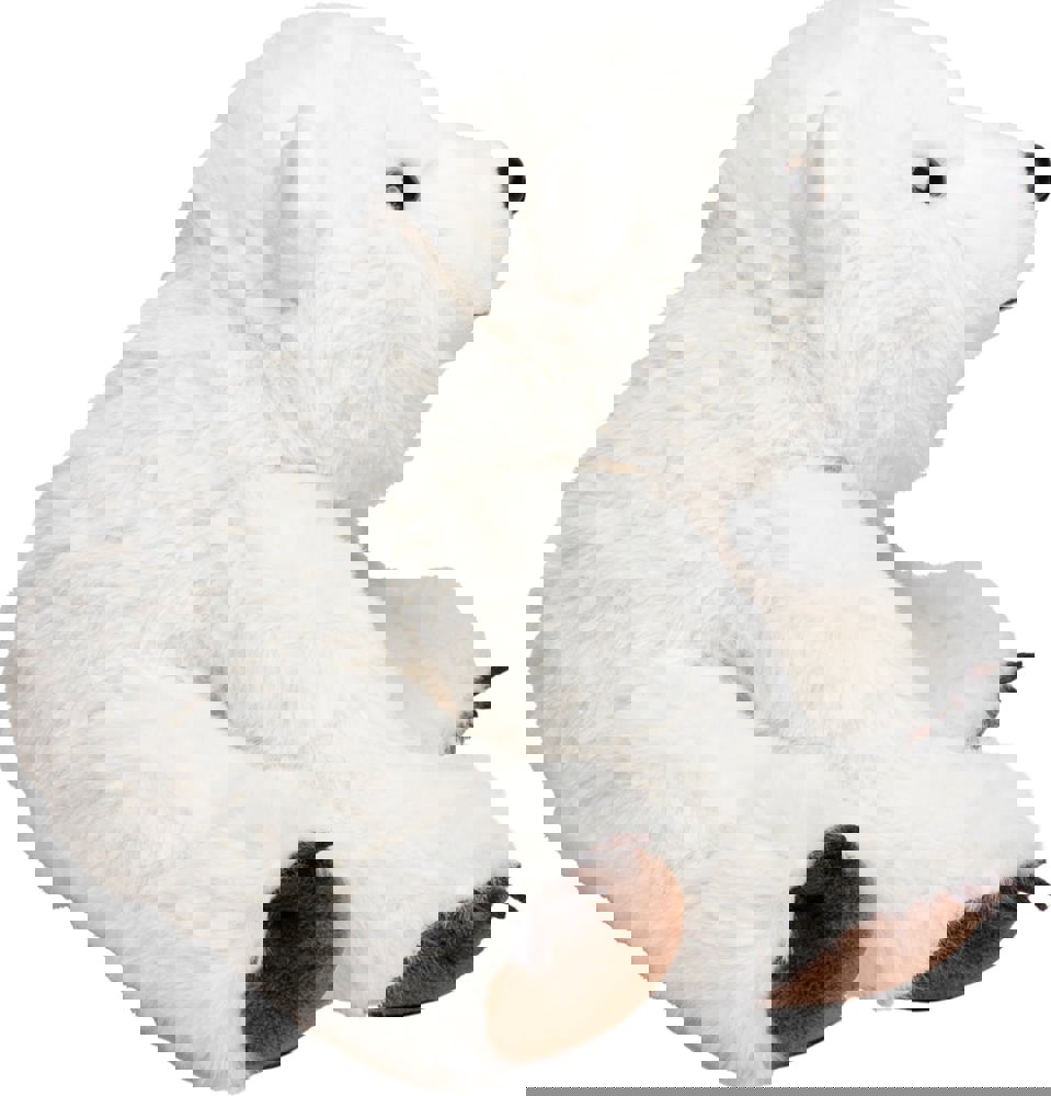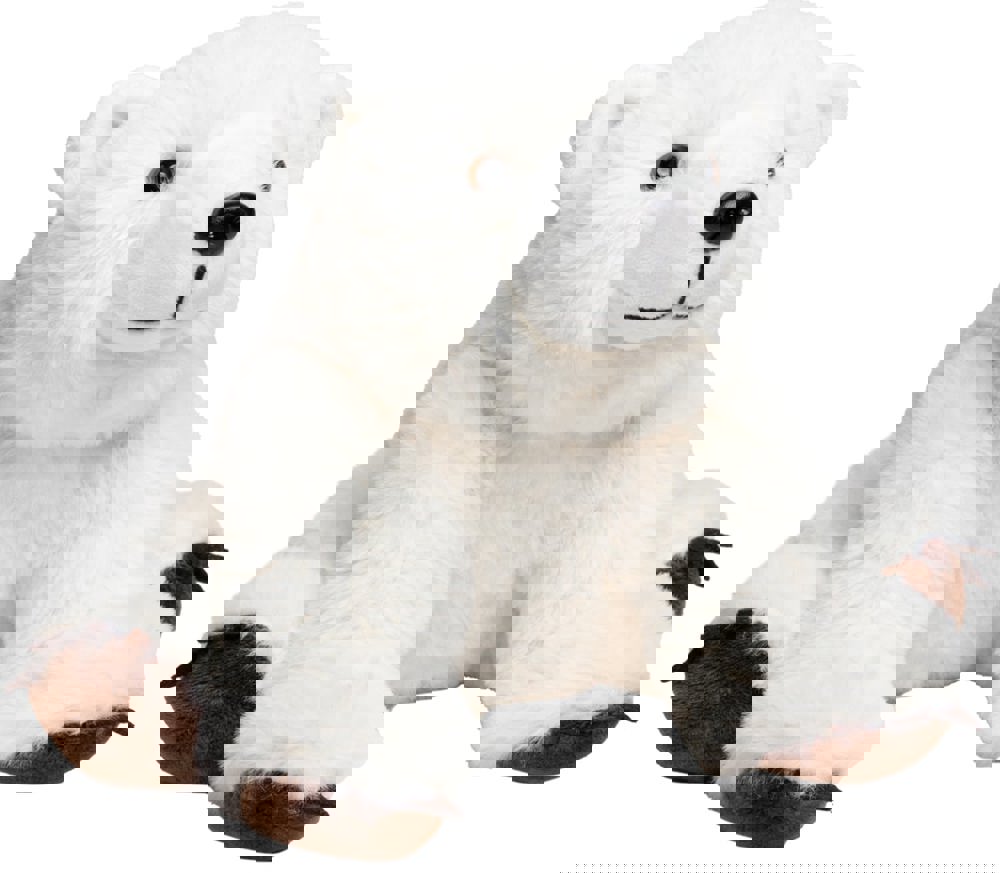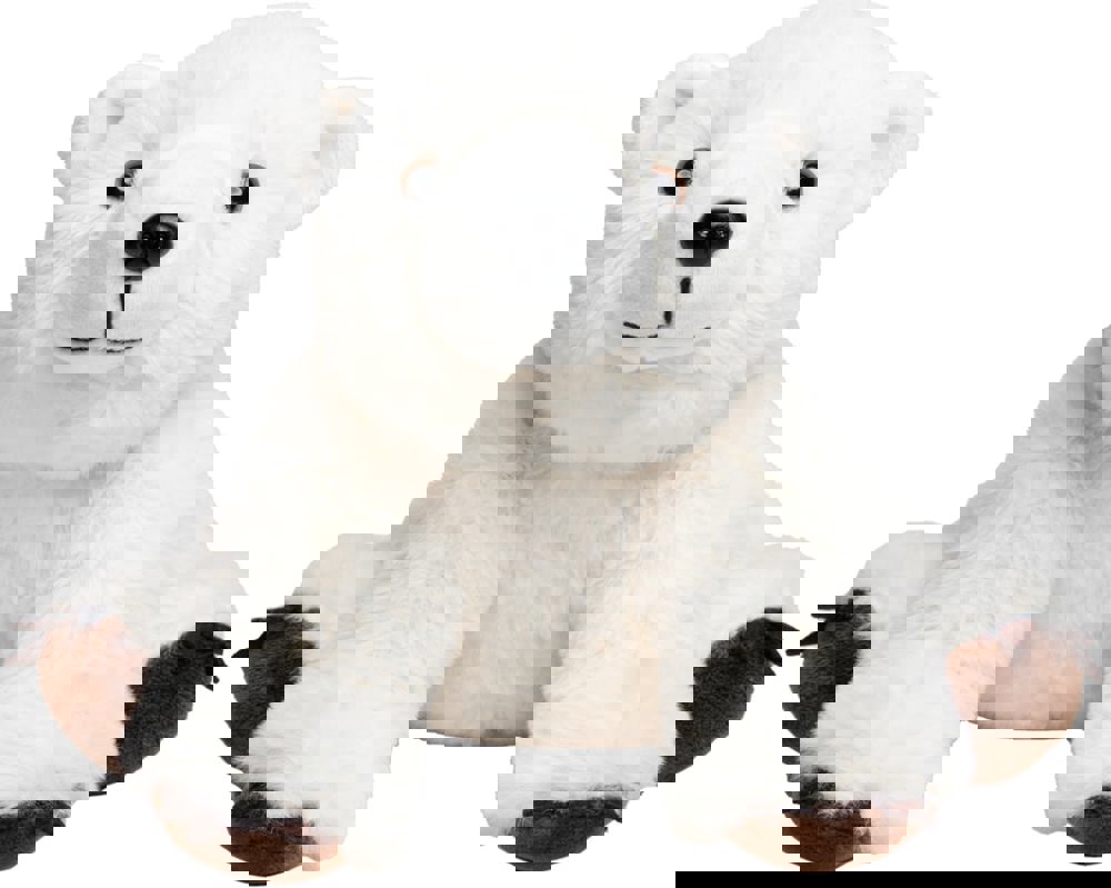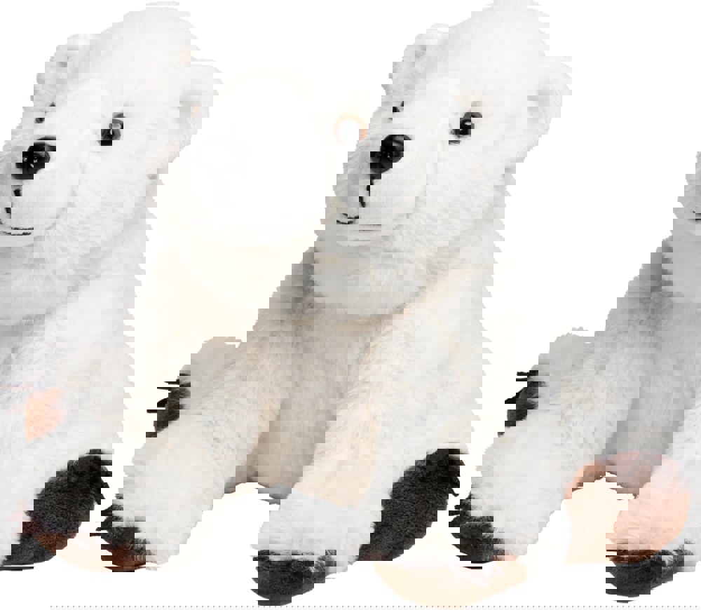 Irgendwo am Nordpol springt ein kleines Eisbärjunges fröhlich von Scholle zu Scholle. Zwischendurch lauert es an einem Loch im Eis und versucht sich wie die großen Verwandten im Fischfang. Nach aufregenden Abenteuern trottet es zu seiner Mutter zurück und kuschelt sich dort ein. Unser Eisbär Lia hat ein supersoftes Fell, welches zum Schmusen animiert. Mit sorgfältig eingenähten Krallen sieht Lia besonders naturgetreu aus.
