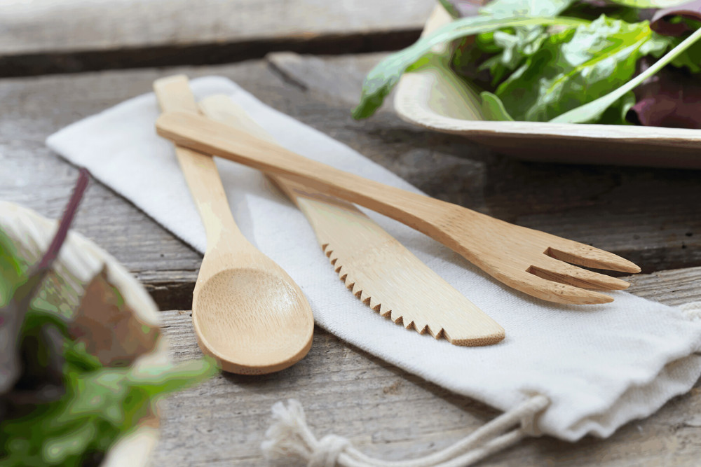 Bambus Besteckset NATURAL TRIP, im Baumwoll-Säckchen: inkl. Gabel, Messer und Löffel mehr