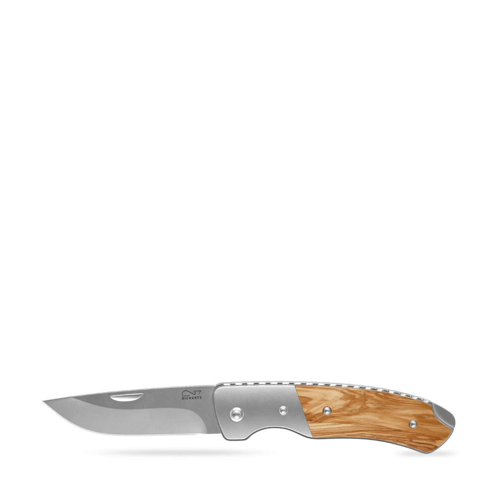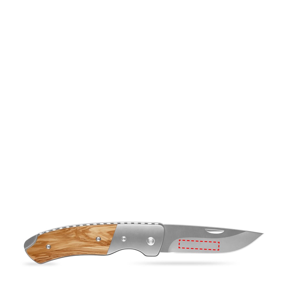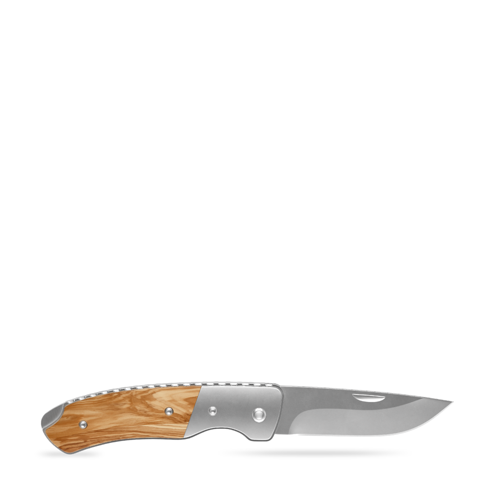 Durch seine natürlichen Olivenholzgriffe und die hochwertige Klinge wird das Taschenmesser gerne genutzt, was langanhaltenden Werbeerfolg garantiert.