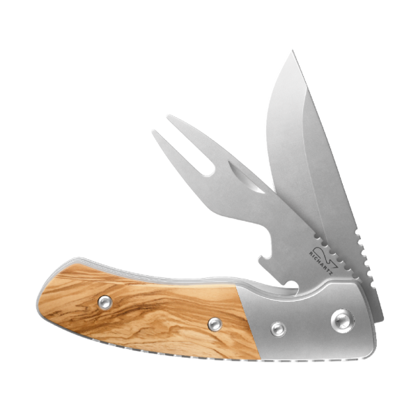 Durch seine natürlichen Olivenholzgriffe und die Besteck-Funktion ist das Picknickmesser der perfekte Outdoor Begleiter und wird gerne genutzt, was langanhaltenden Werbeerfolg garantiert.
