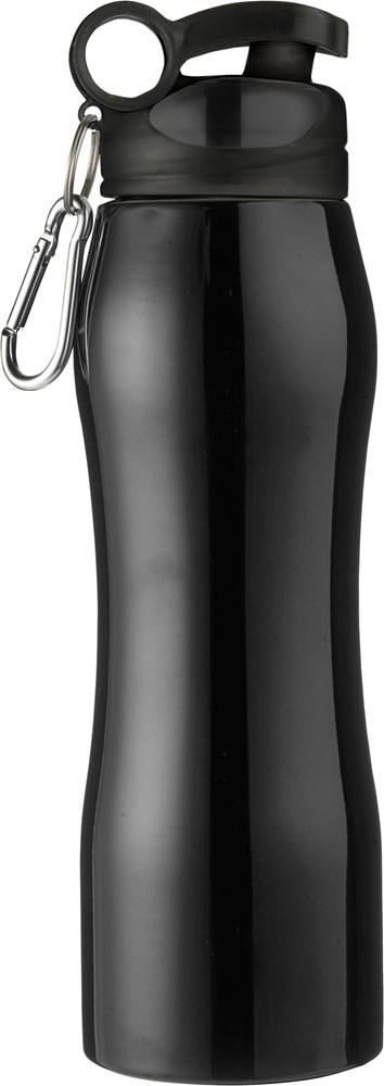 Trinkflasche aus Edelstahl, farbig lackiert, mit Schnellverschluss und Karabinerhaken am Deckel,... mehr