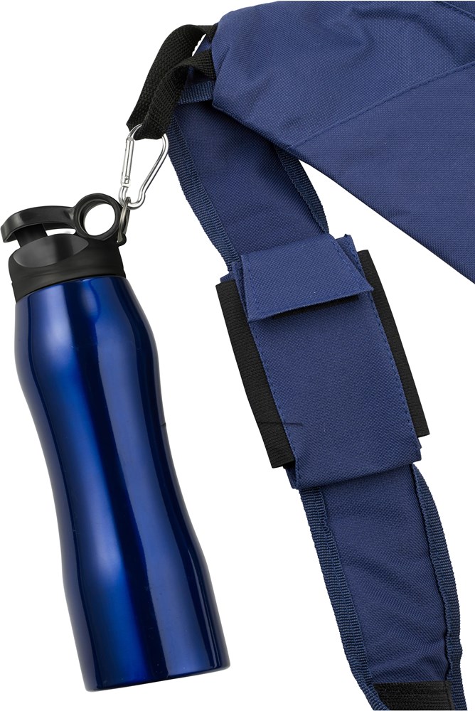 Trinkflasche aus Edelstahl, farbig lackiert, mit Schnellverschluss und Karabinerhaken am Deckel, Inhalt ca. 750 ml, nicht spülmaschinengeeignet.