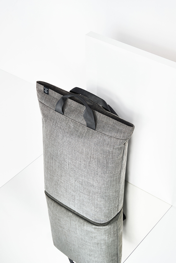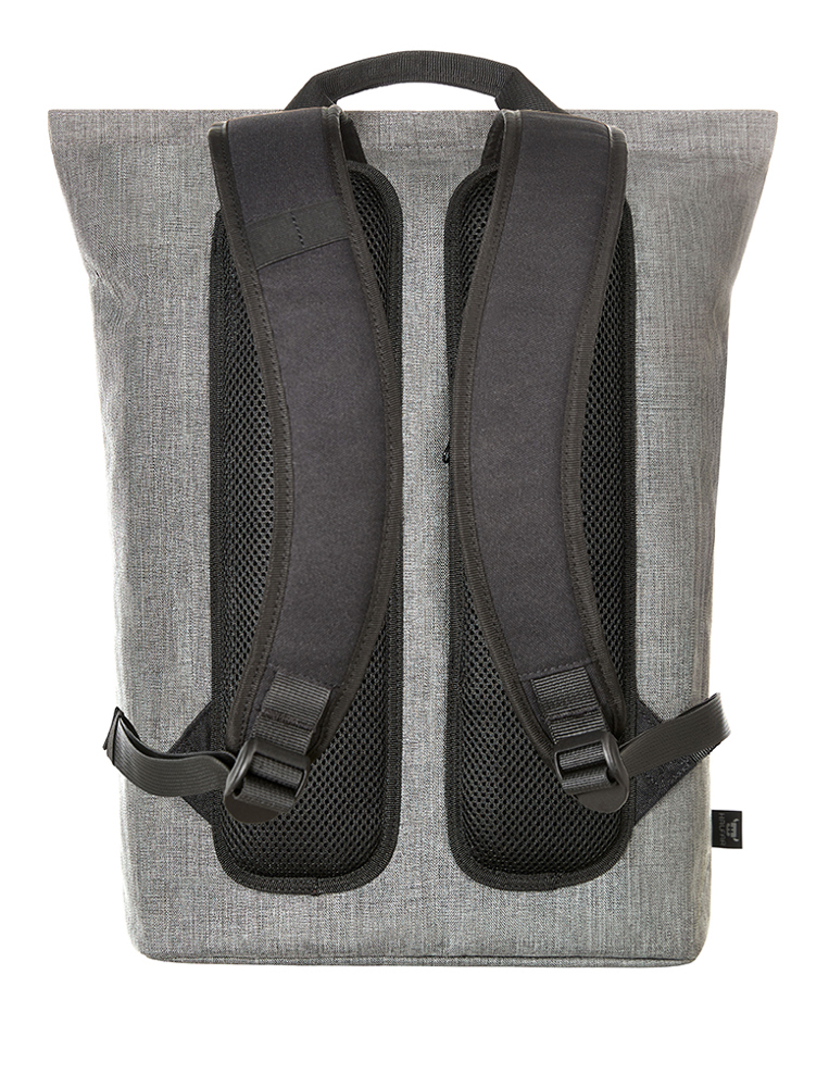 gradliniger, moderner Rucksack; Reißverschluss-Hauptfach mit gepolstertem Notebookfach; rPET Obermaterial; wertige Metall-Accessoires; gepolsterter Boden; aufwändig gepolsterter Rücken mit verstecktem Reißverschlussfach; längenverstellbare gepolsterte Schultergurte mit Gummischlaufen zum Befestigen von z.B. Sonnenbrille; Handgriffe