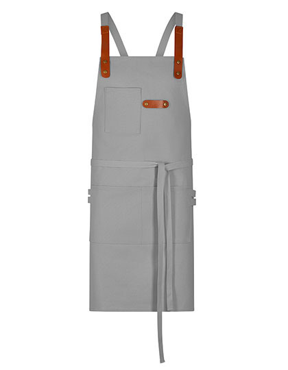 Mit Kreuzbindung im Rücken | Breite: 70 cm / Länge: 80 cm | Mit einer großen, unterteilten Tasche | Mit durchgängigen Stoffbändern, austauschbar, mit je zwei Druckknöpfen | Zier-Label aus PU-Leder auf Brusthöhe links, bedruckbar, abnehmbar
