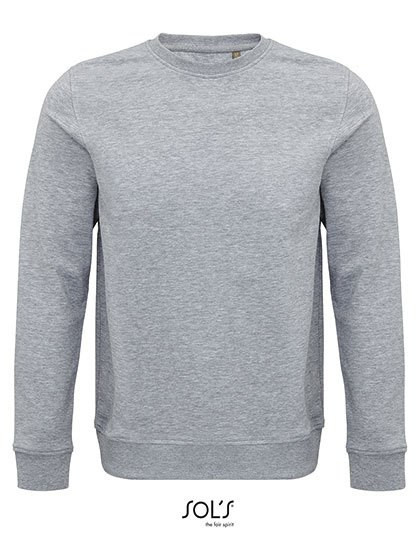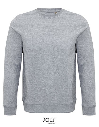 French Terry 280 | 80% Bio-Baumwolle / 20% recycelter Polyester | 3-Faden-Garn | Ungebürstet | Obermaterial und Ripp-Stoff: 100% Baumwolle | Bio-Sweatshirt aus Terry | Seitennaht | Halbmond im Nackenbereich | Nackenband mit Fischgrätmuster | Eingesetzte Ärmel | 2 x 2 gerippte Ärmelabschlüsse, Kragen und Saum | Kein Label