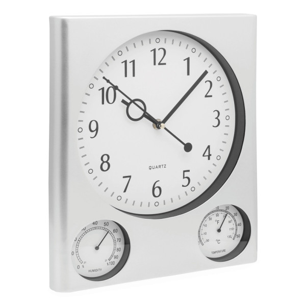 Rechteckige Wanduhr SATURN: mit Hygrometer und Thermometer, batteriebetrieben (1x AA Batterie nicht enthalten)
