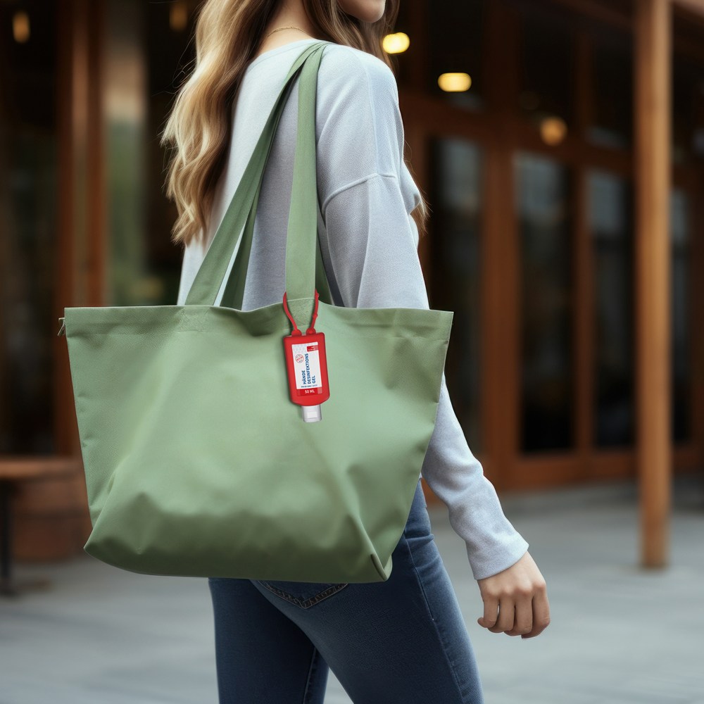 Hände-Desinfektionsgel (DIN EN 1500), 50 ml Bumper rot, Body Label (R-PET)
