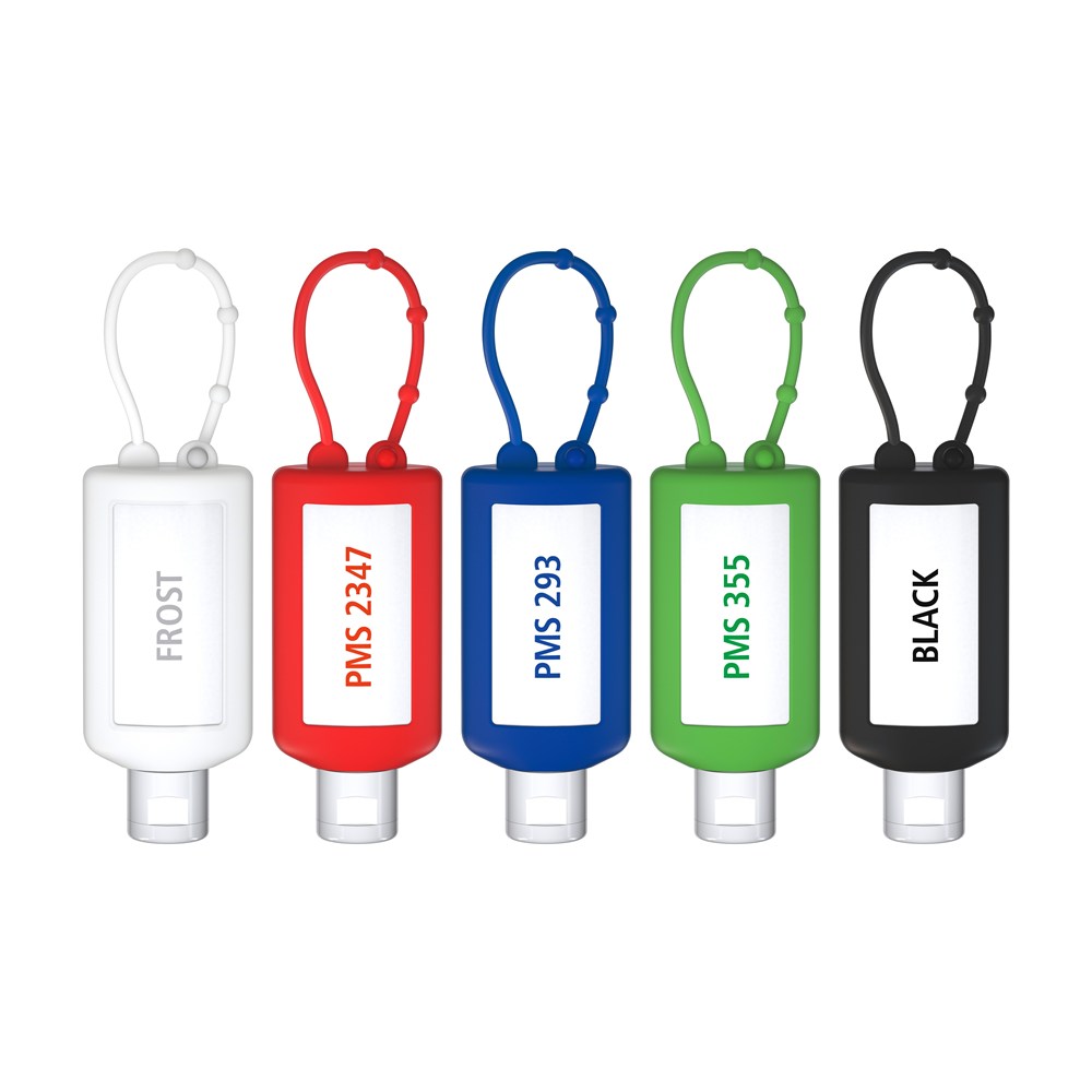 Das Fläschchen mit Silikonhülle ist nicht nur optisch ein echter Hingucker! Raffiniert mit Schlaufe zum Anhängen ans Handgepäck, an den Rucksack oder an den Kinderwagen.