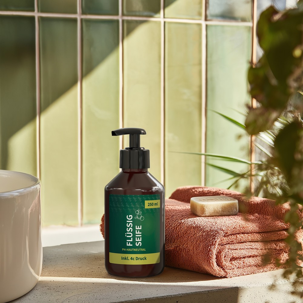 Die Flüssigseife macht sich auch in der Dusche hervorragend: Durch den Spender aus recyceltem PET besteht keine Bruchgefahr und man kann die Seife auch prima als Duschgel verwenden.